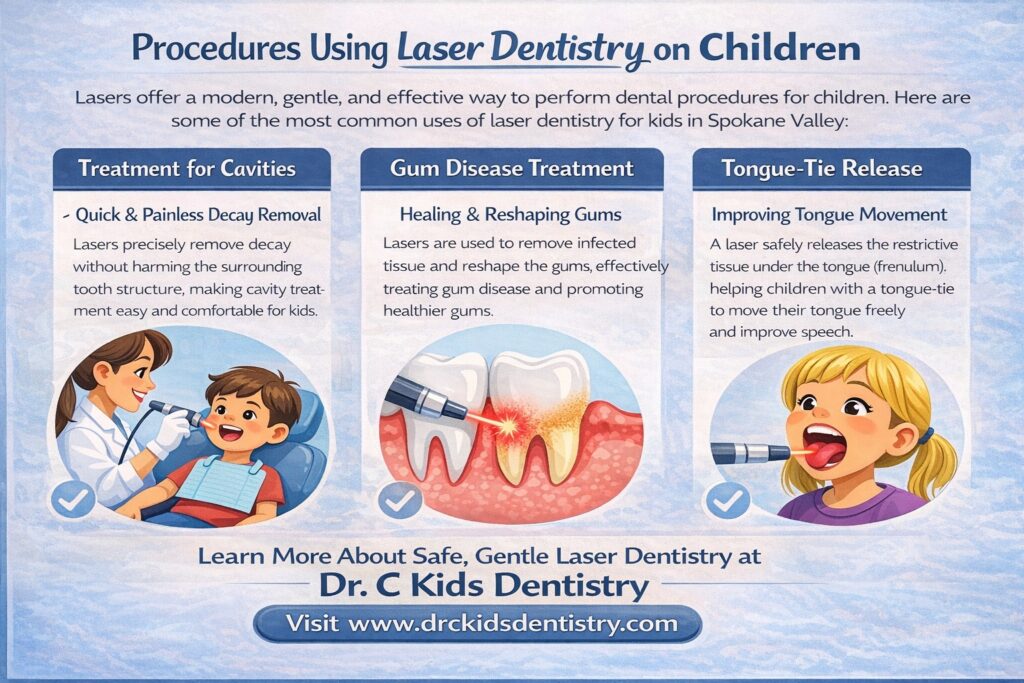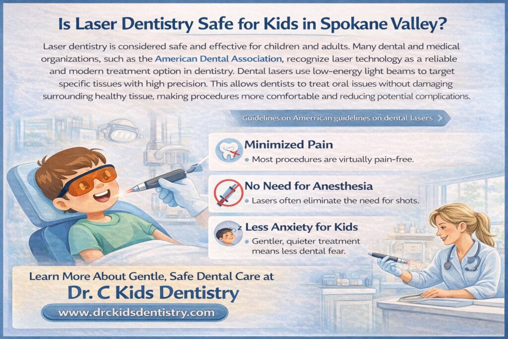 Laser dentistry for kids in Spokane Valley provides a safe, effective, minimally invasive treatment. It not only reduces discomfort and recovery time but also reduces anxiety that may arise from traditional procedures.
